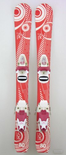 This is a Brand New Lil' Flake Toddler Kid's Shape Ski with Roxy bindings. The bindings are new Roxy bindings that are mounted on the skis. The bindings will adjust to fit boots with boot sole length of 217mm to 232mm. If you are purchasing boots, please make sure that the boot sole length on the ski boots is from 217mm to 232mm. The boot range is from approximately Alpina Zoom boots Mondo 17.5 to 18.5. There is no guarantee that this boot range will work. ONLY the boot sole length is exact for the bindings on this ski.The color of this ski is Red and White. These Lil' Flake skis are great skis for 2 to 4 year olds, depending on the child's size. This ski has a lot of defined shape, so this ski makes great carving turns. When sizing kids for shape skis it is best to begin measuring at the floor. Measure to the bottom of the neck and then to the child's chin in centimeters. This is the size range that will be best for your child. These skis, which are on the shorter size, will be for beginning skiers. With these skis, your child will have an easier time learning and will have more fun.